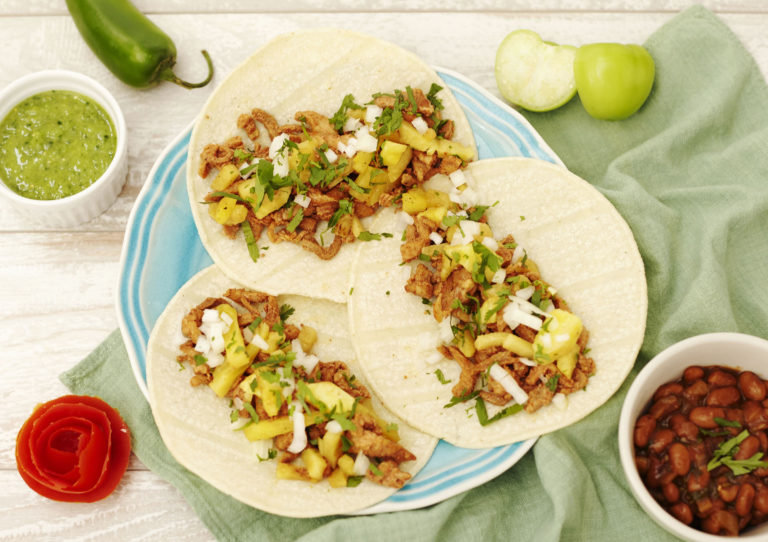 Authentic Mexican street tacos stuffed full of your favorite proteins, onion and cilantro, and served with house-made salsa, Mexican rice and beans.
