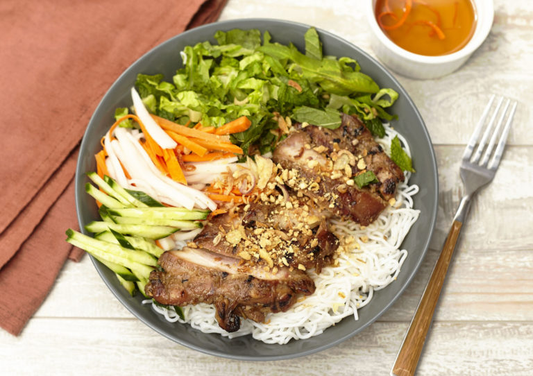 Light and healthy vermicelli noodles topped with flavorful, grilled proteins and a host of fresh herbs, crisp vegetables and traditional Vietnamese sauces.
