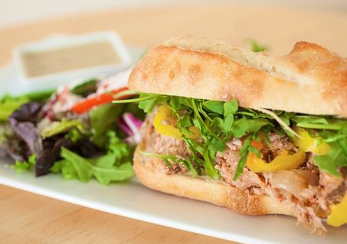 Fresh sandwiches made with all-natural and local ingredients on a toasted baguette. Served with a Mediterranean inspired salad with feta and house-made vinaigrette.