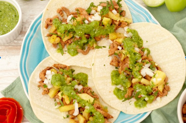 Classic street tacos on corn tortillas with salsas, cilantro, onions, and limes. Add chips and guac to kick it up a notch
