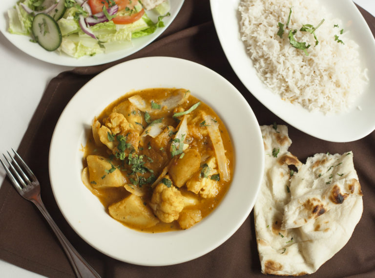 Traditional Indian curries made with fragrant ground spices, served with basmati rice, naan and a refreshing Indian salad
